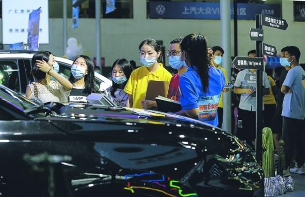 2020第十屆貴陽國(guó)際汽車展覽會(huì)7月9日至13日在貴陽國(guó)際會(huì)議展覽中心舉行。今年的貴陽國(guó)際車展,共有80余個(gè)全球主流汽車品牌參展,眾多暢銷車型展出。7月11日,恰逢周末,不少市民前來觀展。根據(jù)疫情防控要求,展館在客流達(dá)到最大容量后,將會(huì)進(jìn)行限流。
